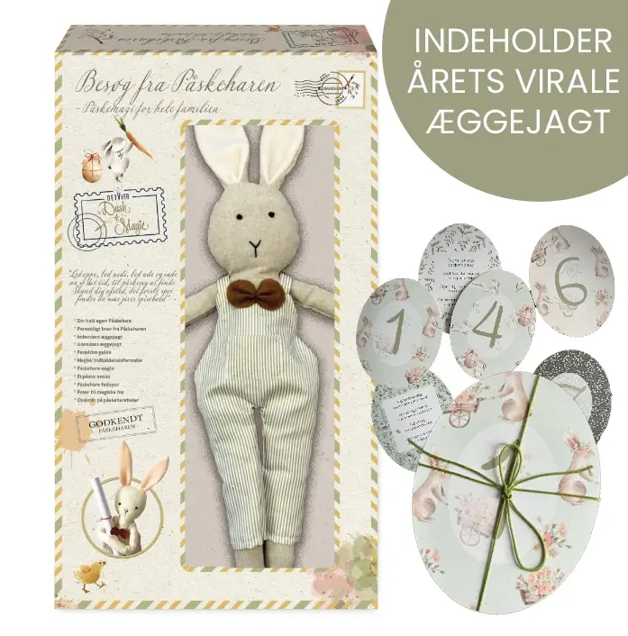 En færdiglavet påsketradition: Alt hvad du skal bruge til en eventyrlig morgen, leveret direkte fra Påskeharens hemmelige værksted. Påsken er mere end bare chokolade. Det er duften af det spæde forår, lyden af listende poter i græsset og visheden om, at magien findes lige uden for døren. Det er de små øjeblikke, der bliver til barndommens største minder.